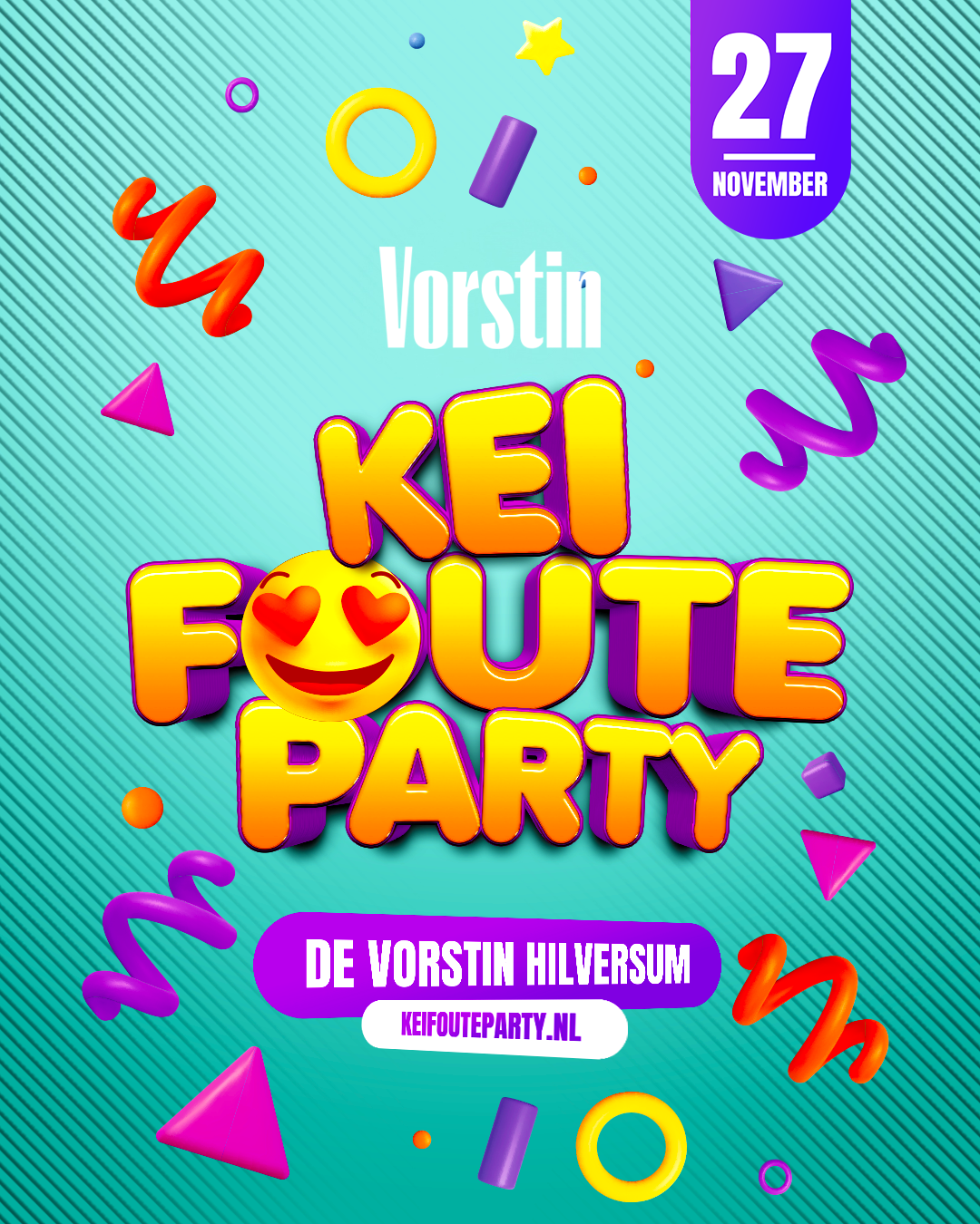 Zoek alvast je foute outfit bij elkaar en maak je avond vrij, want de Kei Foute Party komt eraan, en geloof ons: Dit wil je niet missen! Wat kun je verwachten? De gekste outfits, de foutste guilty pleasures van de 70’s tot nu en kilo’s confetti. Denk aan glitterpakken, neon leggings, panterprint, schuifelen op foute slow jams en compleet uit je dak gaan op de hardste meezingers. Van ABBA tot André Hazes, van Backstreet Boys tot Snollebollekes, we draaien álles wat eigenlijk niet mag, maar stiekem het allerlekkerst is.
